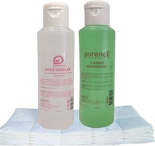KIT SOLVANT Purenail avec 1 Cleaner Dégraissant 125 ml + 1 Diss'Ongle acétone 125 ml + 100 carrés de cellulose pour Gel UV, vernis et Faux Ongles, livraison PRIME gratuite en France