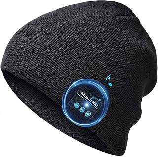 Bonnet Bluetooth 5.0 Idee Cadeau pour Homme/Femme, Running Bonnet Connecté avec Hifi mp3 Musique, Chaud Chapeau Hiver Tech Accessoires pour Snowboard, Ski, Course. (Noir)