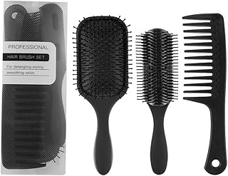 AODOOR Ensemble de 3 Brosse à Cheveux, Nylon Brosse de Démêlante/Brosse de Ventilation/Peigne à Dents Larges four Homme Femme, Styling Brosse à Cheveux pour Les Cheveux Longs Epais Fins Frisés(Noir)