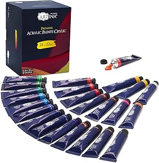 Artina - Lot de Peinture Acrylique Crylic Premium – 24 Tubes de 22 ML - 24 Couleurs de Haute qualité - Peinture Acrylique Professionnelle et pour Amateur – pour Adultes et Enfants