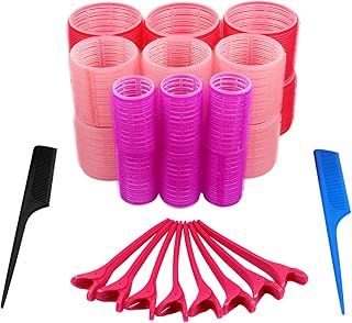 EMAGEREN Kit de 24 Pcs Rouleau Cheveux 64/44mm 20 Pinces à Cheveux Couleur Aléatoire 2 Peigne avec Sac de Rangement Rouleau Velcro Cheveux Rouleau Cheveux Auto Agrippant pour Cheveux Salons Coiffure